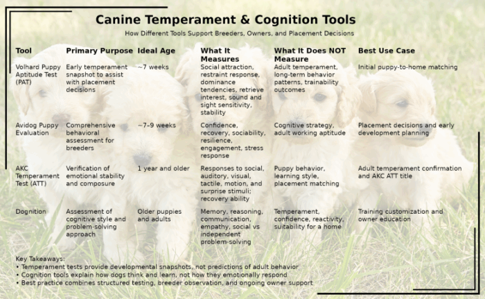 Temperament and cognition tools are guides, not guarantees.